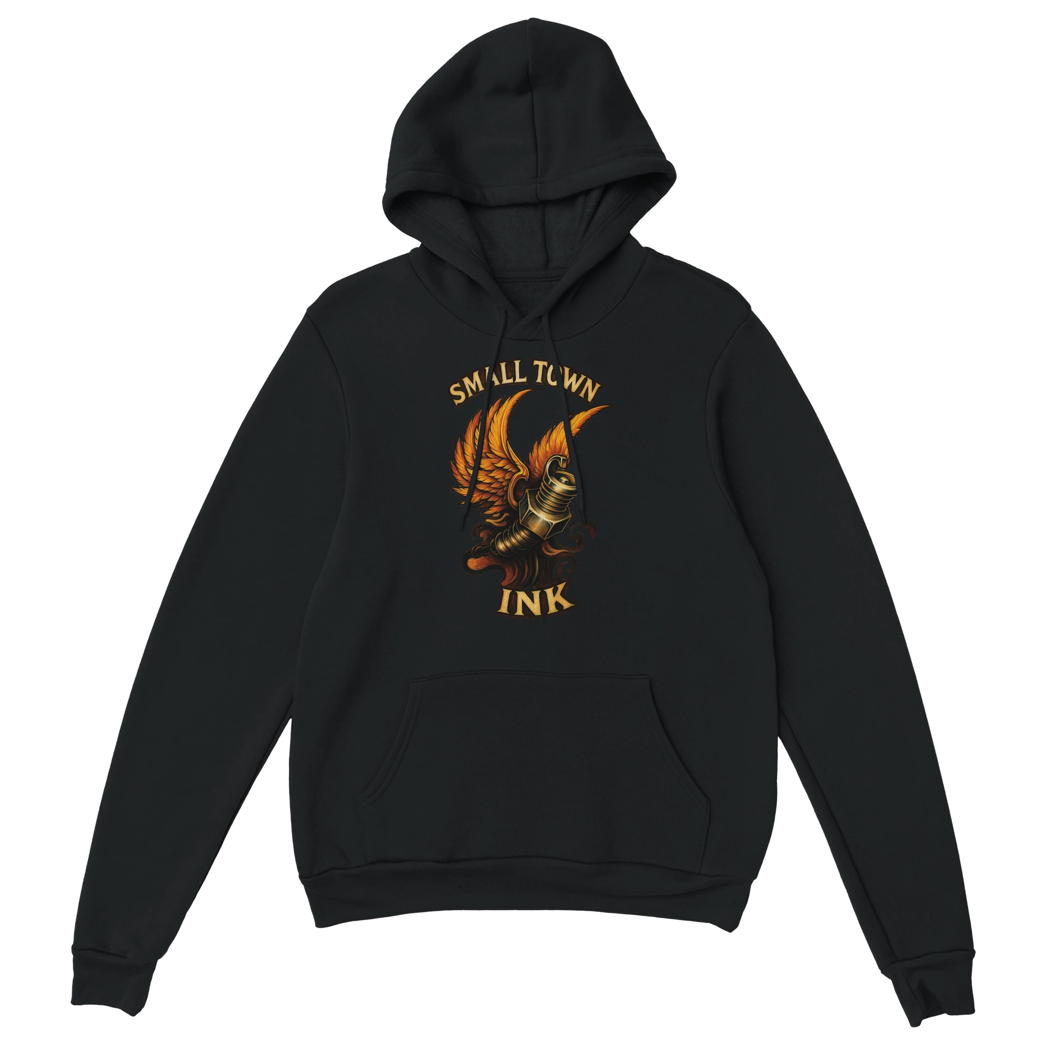 Embrace your bold style with our Sparkplug Tatts Hoodie featuring a striking design that combines edgy aesthetics with unmatched comfort.